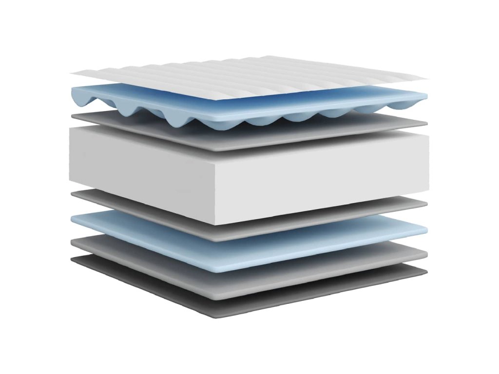 - Vylepšený komfort: Matrace bez pružin má více vrstev, které poskytují měkký až středně měkký pocit a kolébavé pohodlí pro všechny polohy při spánku. Matrace navíc účinně tlumí hluk a vibrace způsobené převalováním a otáčením, čímž zajišťuje klidný a nerušený spánek.