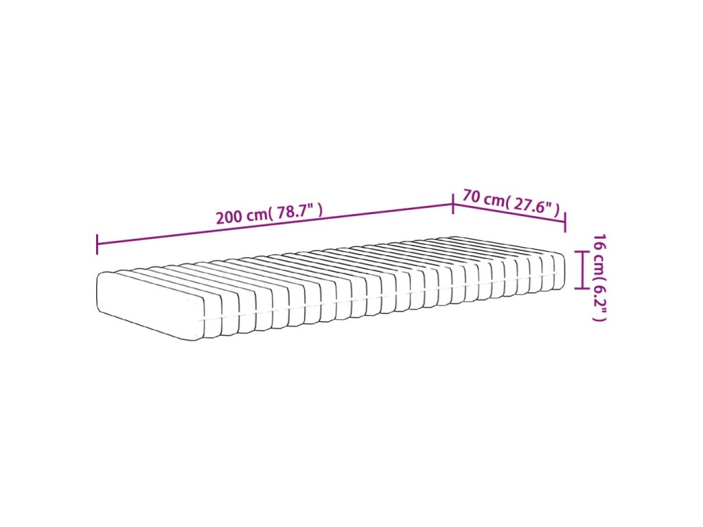 - Rozměry: 70 x 200 x 16 cm (Š x D x T)