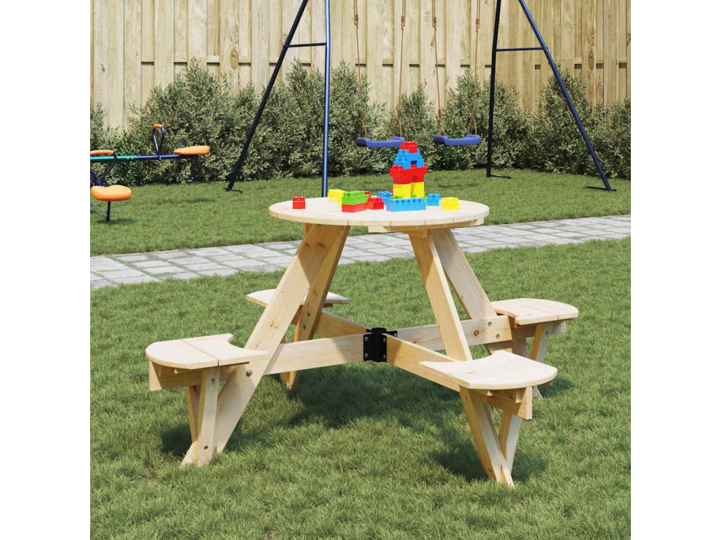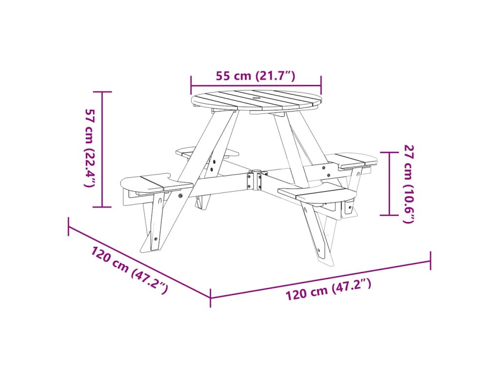 Tento piknikový stůl je ideální pro terasy, zahrady a venkovní prostory a poskytuje pohodlné a příjemné místo pro odpočinek a zábavu vašich dětí a jejich přátel.