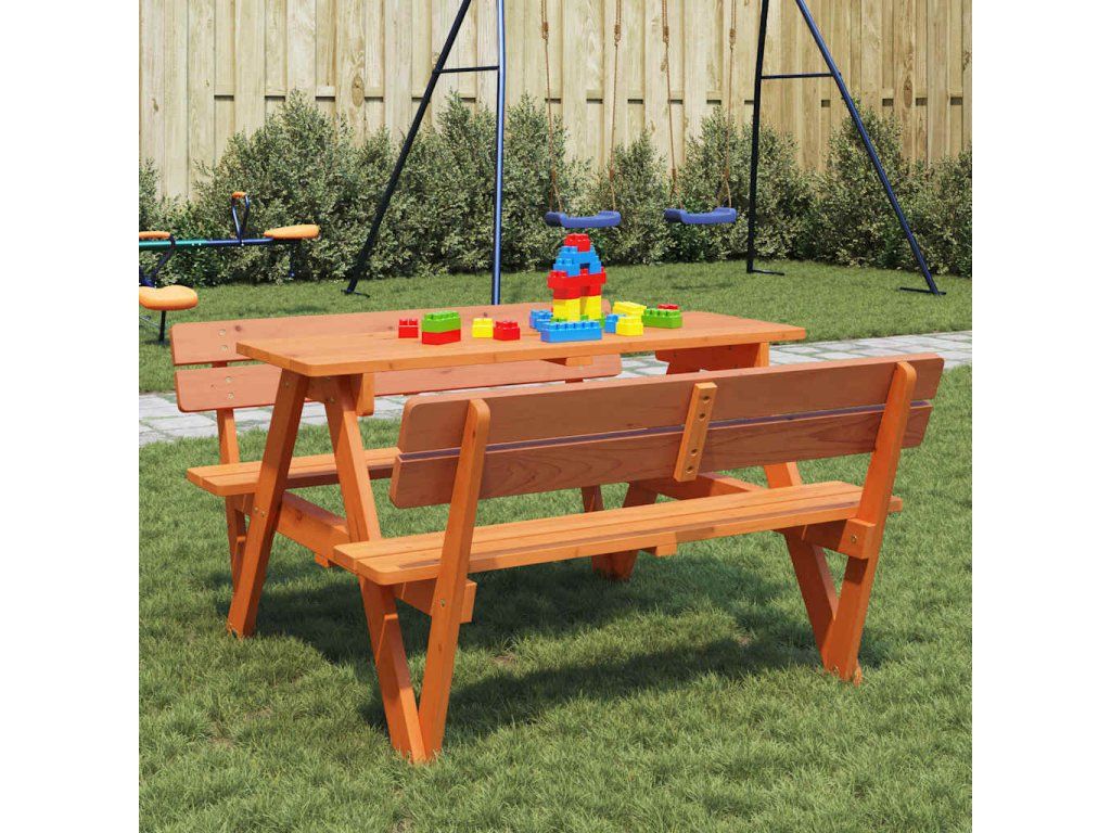Tento piknikový stůl je ideální pro terasy, zahrady a venkovní prostory a poskytuje pohodlné a příjemné místo pro odpočinek a zábavu vašich dětí a jejich přátel.