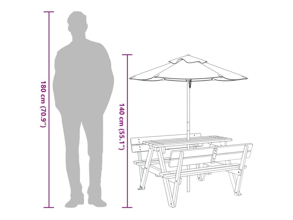 Tento piknikový stůl se slunečníkem je ideální pro terasy, zahrady a venkovní prostory a poskytuje pohodlné a příjemné místo pro odpočinek a zábavu vašich dětí a jejich přátel.