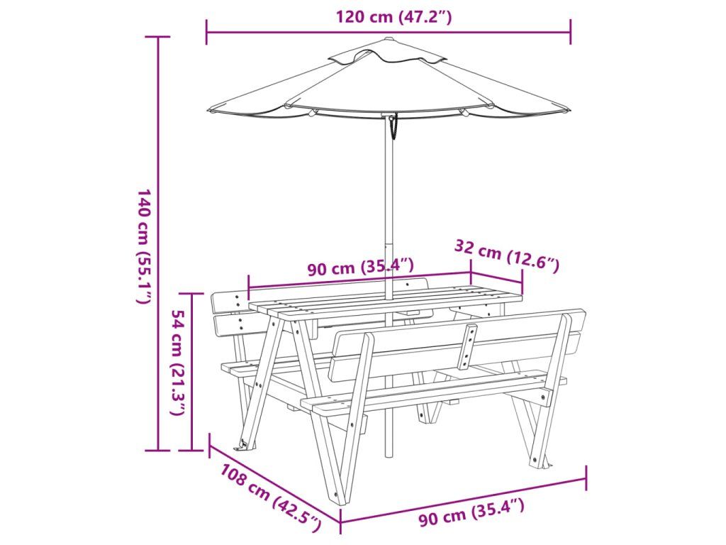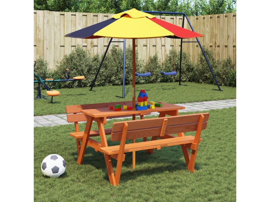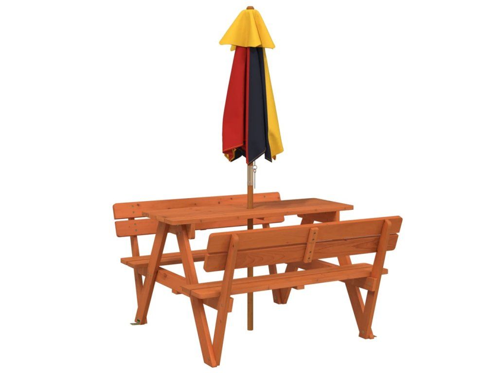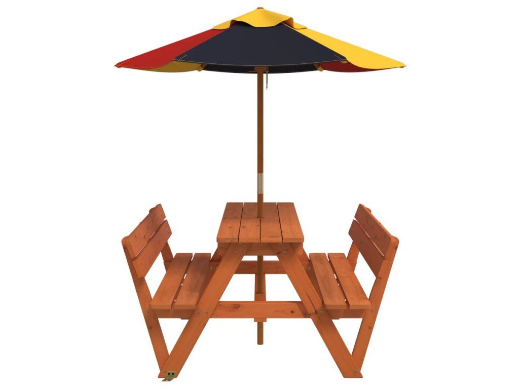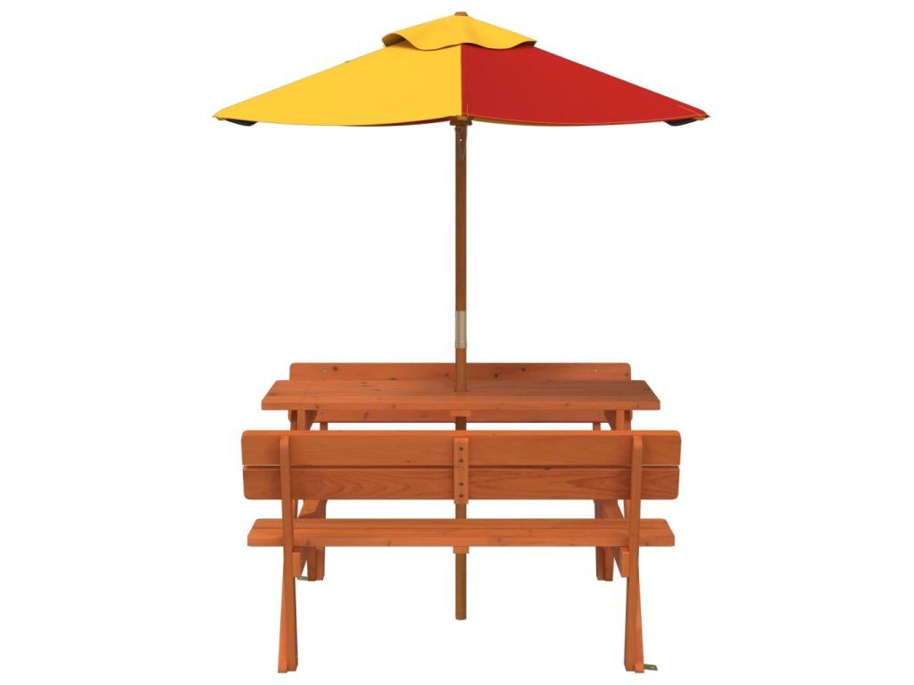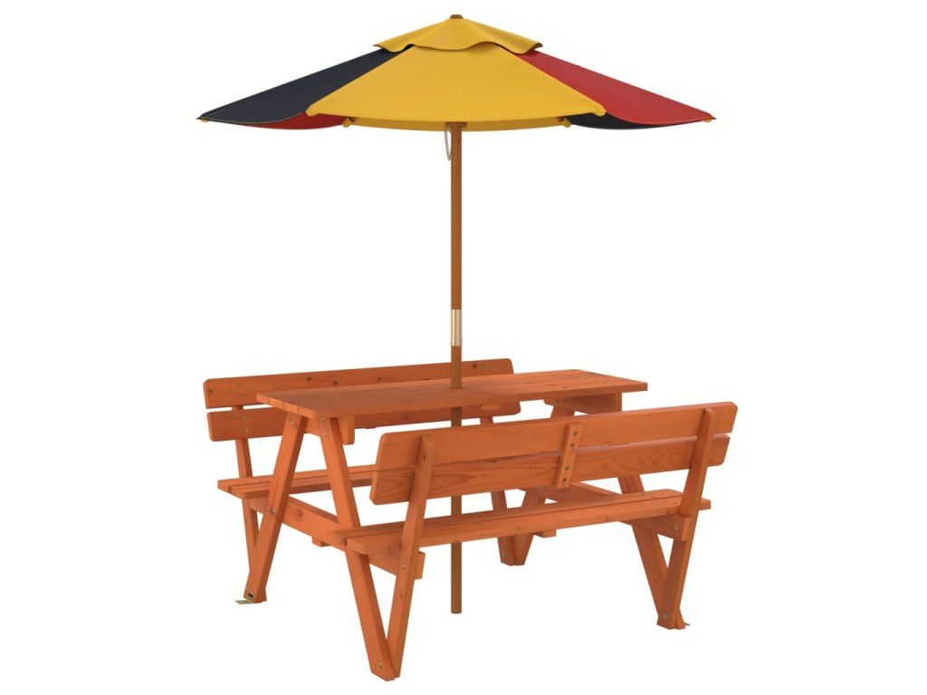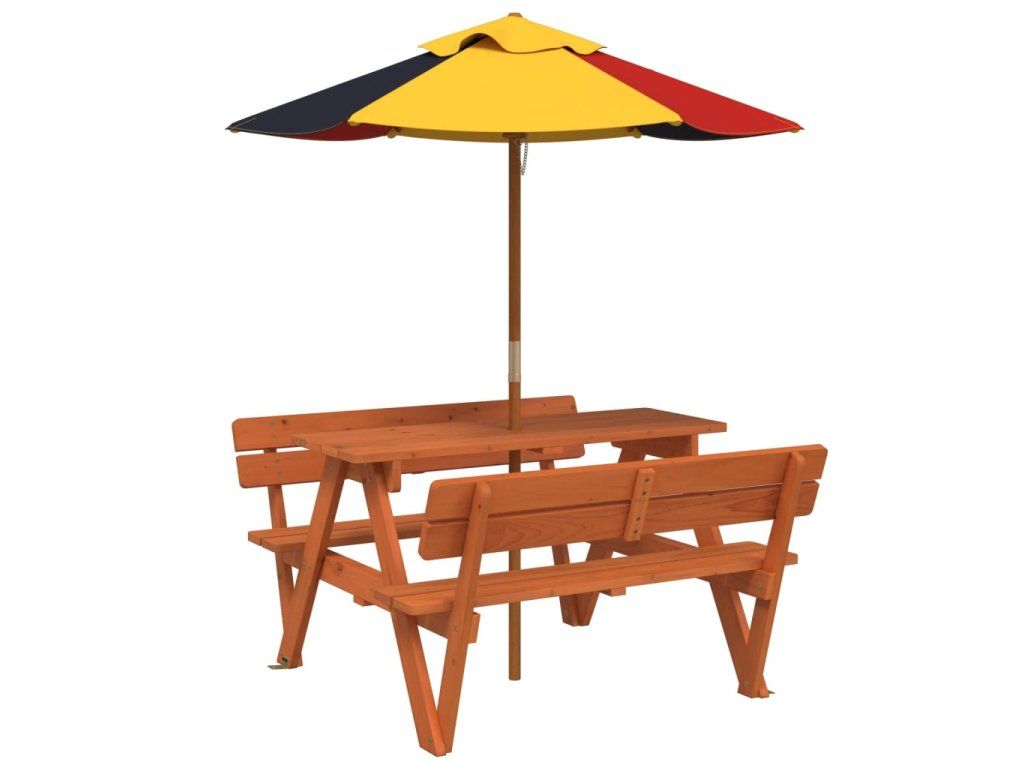 Tento piknikový stůl se slunečníkem je ideální pro terasy, zahrady a venkovní prostory a poskytuje pohodlné a příjemné místo pro odpočinek a zábavu vašich dětí a jejich přátel.