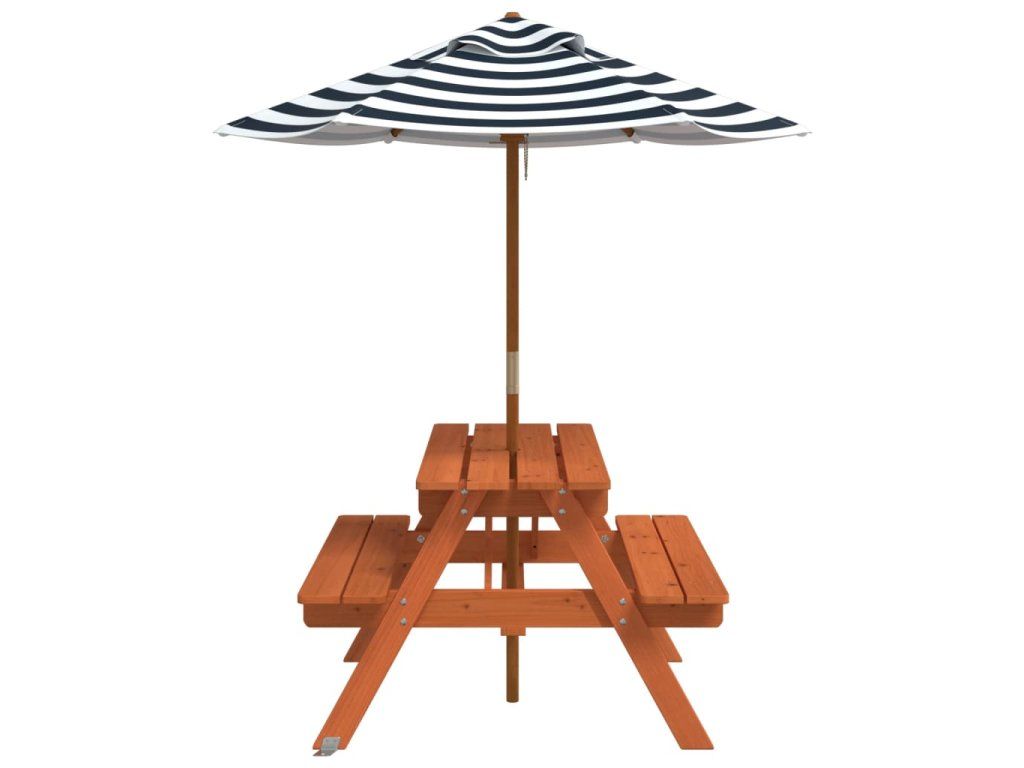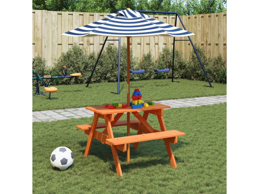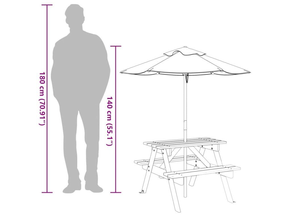 Tento piknikový stůl se slunečníkem je ideální pro terasy, zahrady a venkovní prostory a poskytuje pohodlné a příjemné místo pro odpočinek a zábavu vašich dětí a jejich přátel.