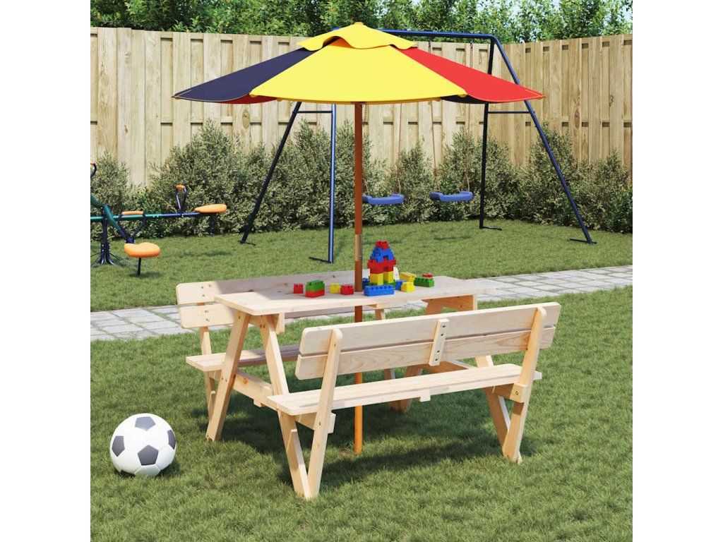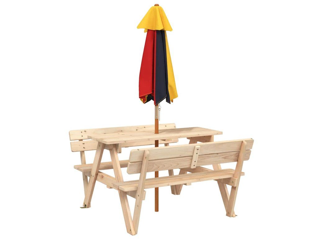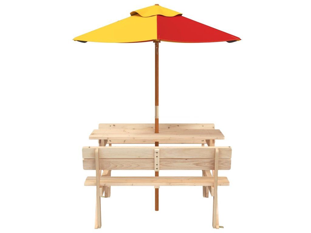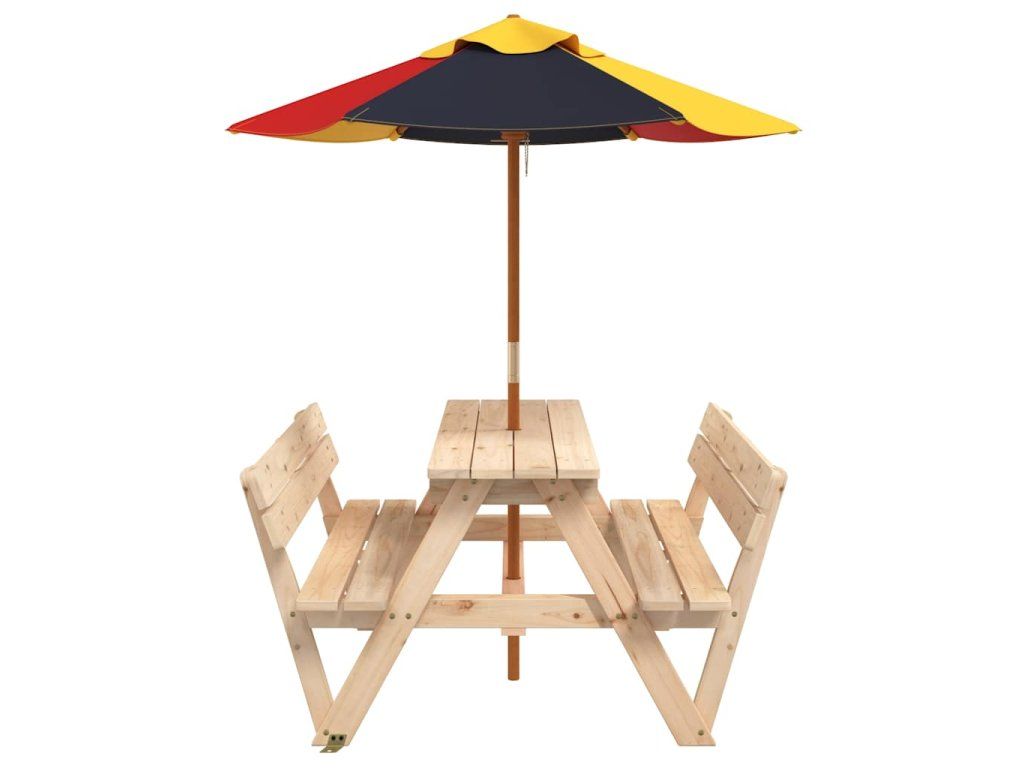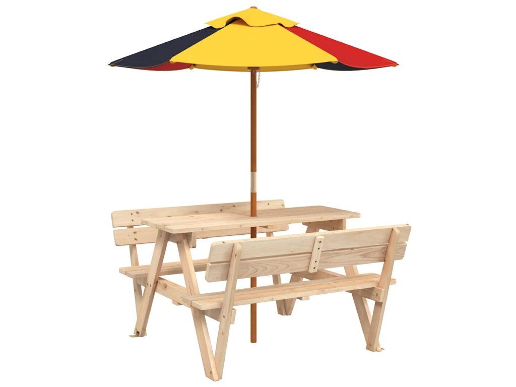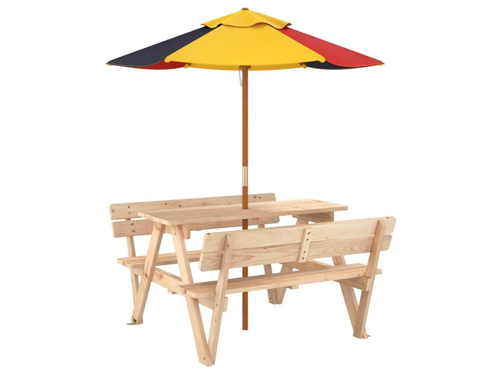 Tento piknikový stůl se slunečníkem je ideální pro terasy, zahrady a venkovní prostory a poskytuje pohodlné a příjemné místo pro odpočinek a zábavu vašich dětí a jejich přátel.