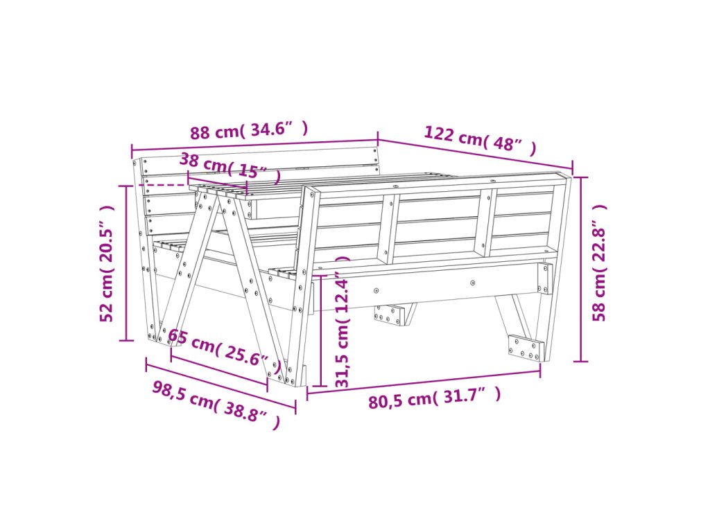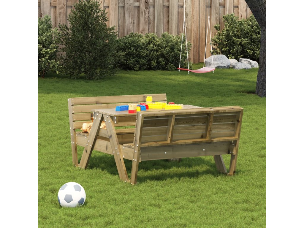 Tento dřevěný piknikový stůl umožňuje dětem pohodlně jíst venku, hrát stolní hry a bavit se s kamarády.