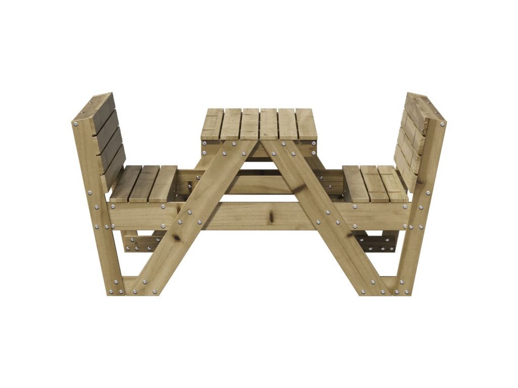 - Impregnované dřevo: Zahradní piknikový stůl je vyroben z masivního borového dřeva. Masivní borové dřevo je krásný přírodní materiál. Borové dřevo má rovnou kresbu a obsahuje suky, které materiálu dodávají jeho charakteristický, rustikální vzhled. Impregnace je konzervační proces, který se provádí pomocí autoklávu. Tlaková úprava zvyšuje odolnost proti trouchnivění a počasí.
