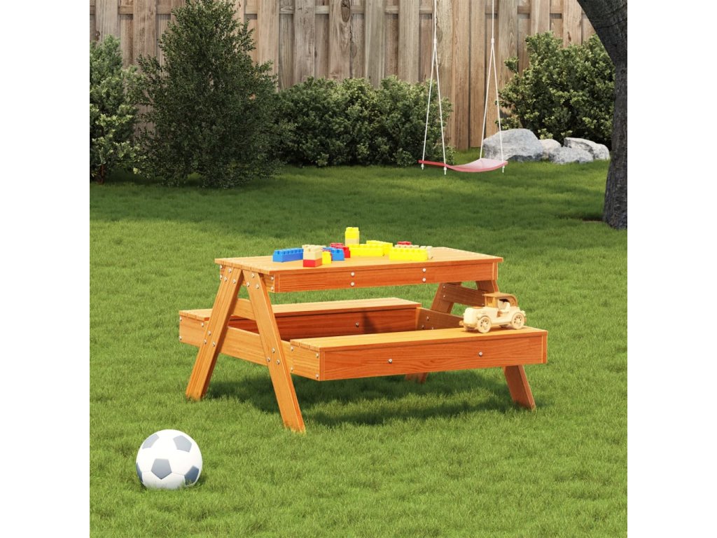 Tento dřevěný piknikový stůl umožňuje dětem pohodlně jíst venku, hrát stolní hry a bavit se s kamarády.
