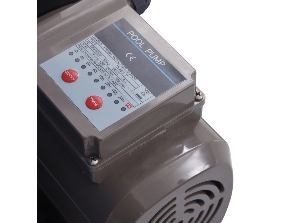 Tento pískový filtr dokáže filtrovat 10 980 litrů za hodinu a je vybavený odolnou a korozivzdornou filtrační nádrží. Je rezistentní vůči kyselým vlivům chlorované bazénové vody. Má vestavěný časovač s možností nastavit provozní dobu dle vašich požadavků v cyklech 2 h, 4 h, 6 h, 8 h, 10 h, 16 h a 24 h. Časovač má 2 režimy: nepřetržitý režim a režim jednoho cyklu. V nepřetržitém režimu bude čerpadlo pracovat po stanovenou dobu a poté se zastaví. Tento program bude opakovat každý den. V režimu s jedním cyklem bude čerpadlo pracovat po zvolené množství hodin a poté se zastaví. Provozní hodiny lze snadno nastavit stisknutím tlačítka časovače. K dispozici je také před-filtrace, která zabraňuje znečištění filtru hrubým pískem. Design horní přírubové svorky umožňuje 360stupňovou rotaci pro snadnou instalaci. Toto bazénové filtrační čerpadlo s vyztuženým plastovým pláštěm je odolné proti povětrnostním vlivům a má dlouhou životnost. Set také obsahuje fixovatelnou základnu pro bezpečnou montáž. Je kompatibilní s většinou nadzemních bazénů s 38mm portem.