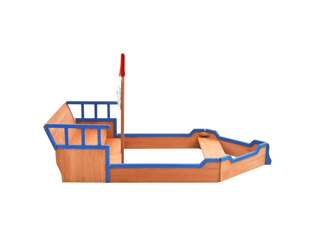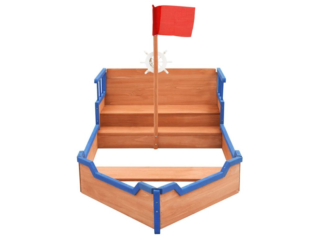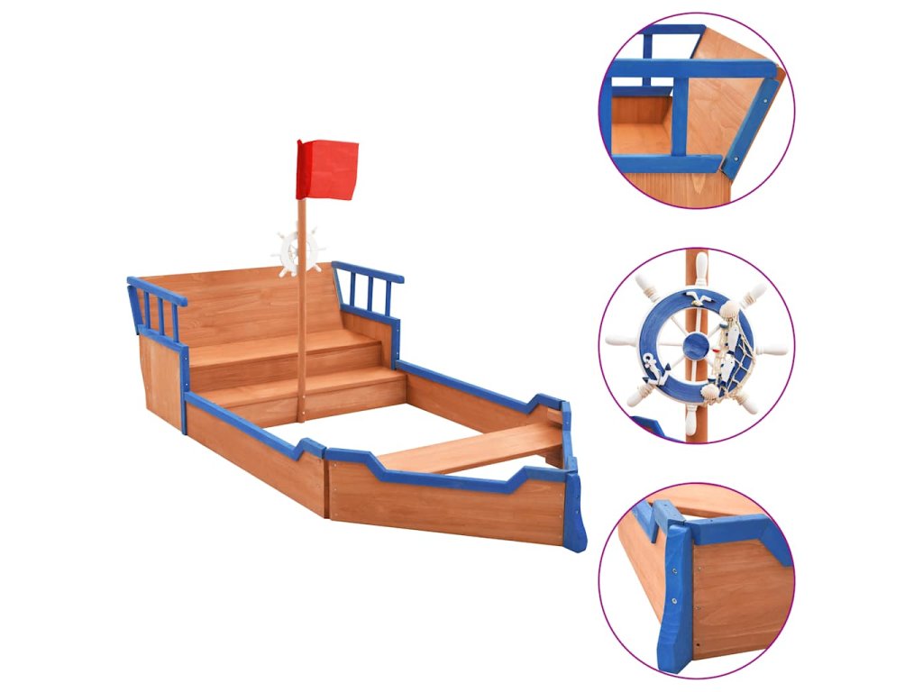 Tato herní vybavení kombinuje pískoviště s posezením a tajným úkrytem za opěradlem. Je ozdobené stožárem s tyčí a kormidlem, takže vypadá jako skutečná loď, se kterou vaše děti mohou pořádat pirátské výpravy za dobrodružstvím.