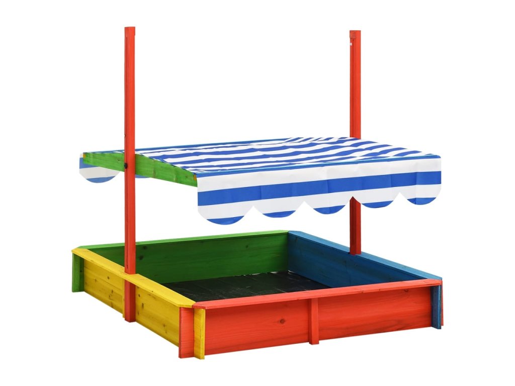 Toto dřevěné pískoviště se stříškou proti UV záření je dokonalým vybavením pro venkovní zábavu.