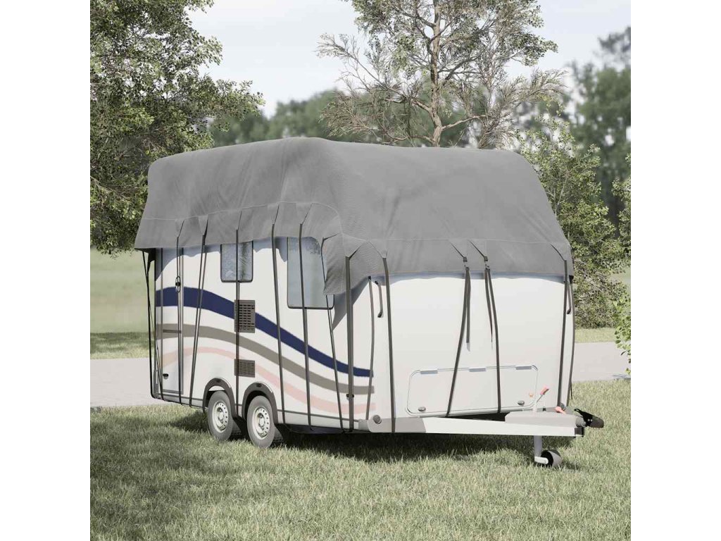 - Větruodolná konstrukce: Díky nastavitelným popruhům s přezkami po celém obvodu zůstane střešní kryt karavanu bezpečně na svém místě i při silném větru.