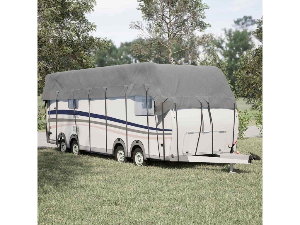 - Větruodolná konstrukce: Díky nastavitelným popruhům s přezkami po celém obvodu zůstane střešní kryt karavanu bezpečně na svém místě i při silném větru.
