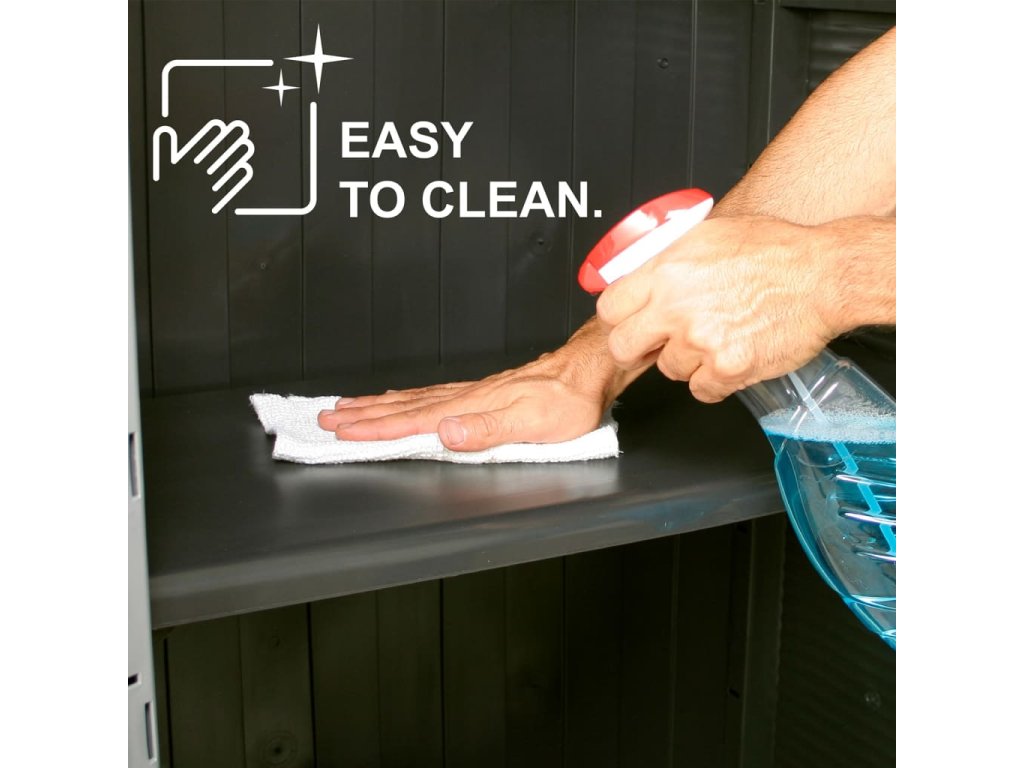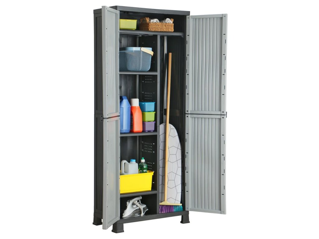 Úložná skříňka je vyrobená z plastu, takže se snadno čistí. Uvnitř najdete spoustu místa, kam si můžete uschovat všechny důležité věci, které chcete mít na dosah ruky. Skříň má kompaktní design a pomůže vám maximálně využít i omezené prostory.