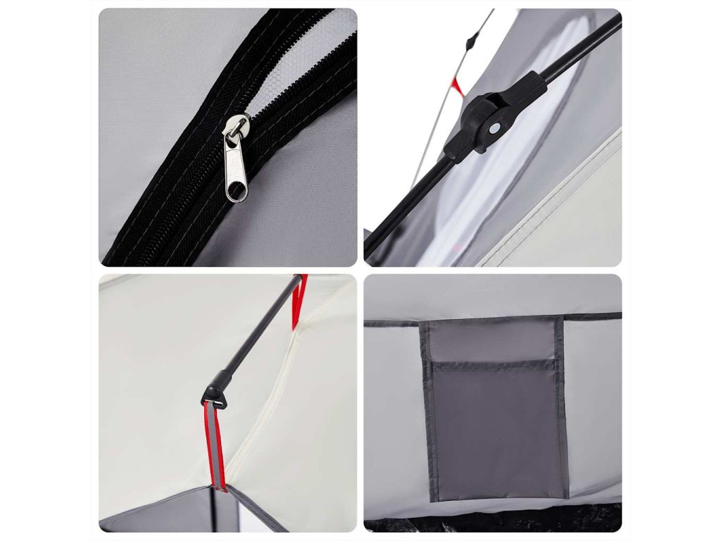 - Rychloupínací systém: Postavte stan snadno a bez námahy pomocí rychloupínacího systému! Stan položte na zem, roztáhněte předem sestavené tyče, dokud nezapadnou na své místo, a vše je hotovo!