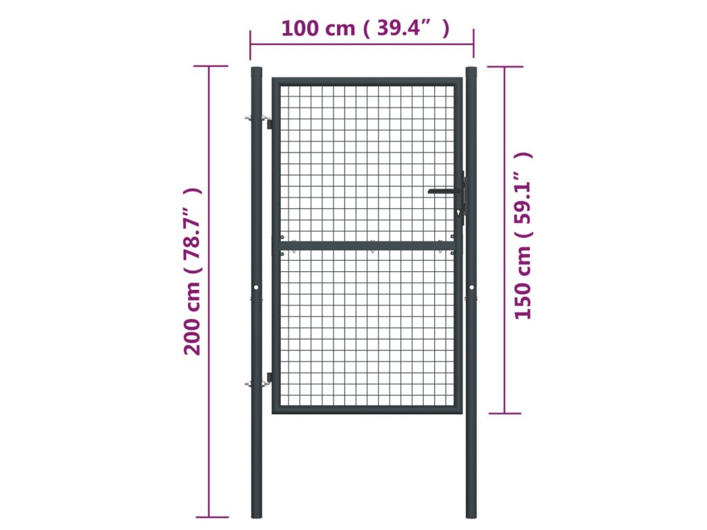 Zahradní branka je perfektně zpracovaná a vyrobena z pozinkované oceli s práškovým povrchem, která je odolná vůči korozi a tvoří pevnou konstrukci. Má dva boční sloupky se šrouby k zavěšení pro snadnou instalaci.