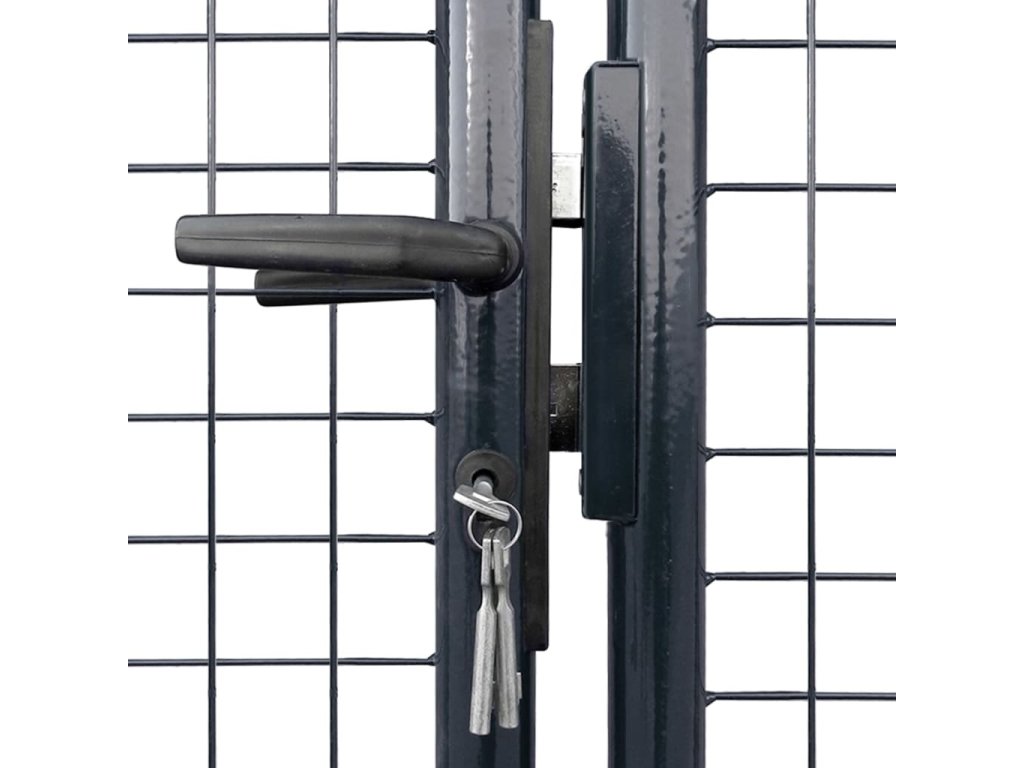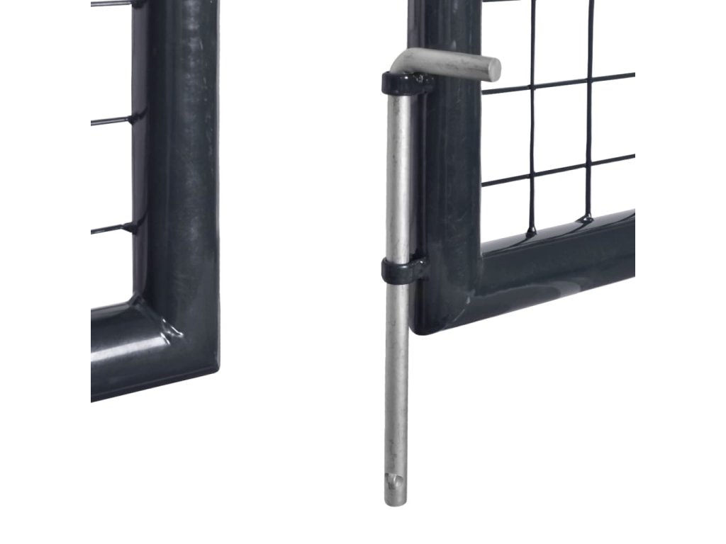 Zahradní branka je perfektně zpracovaná a vyrobená z pozinkované oceli s práškovým povrchem, který je odolný proti korozi a vytváří pevnou konstrukci. Má dva boční sloupky se šrouby k zavěšení pro snadnou instalaci. Je rovněž vybavena ukotvovacím kolíkem pro velký spodní šroub, který zajišťuje, že může být branka bezpečně uzamčena.