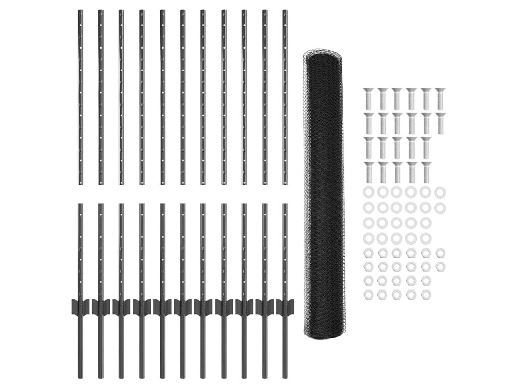 - Kompletní sada: Každé balení obsahuje jednu rolku šedého pletiva a několik pevných kovových sloupků, ideální pro oplocení všech velikostí.
