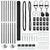 - 1 x Oplocení, 5 x Sloupek, 2 x Úhlový sloupek, 5 x Hrot, 2 x Úhlový hrot, 5 x Plastová krytka, 15 x Plastový podpěra napínacího drátu, 2 x Krytka úhlového slouku, 2 x Hardware úhlového sloupku, 3 x Napínač, 1 x 25 m Vázací drát, 1 x 33 m Napínací drát