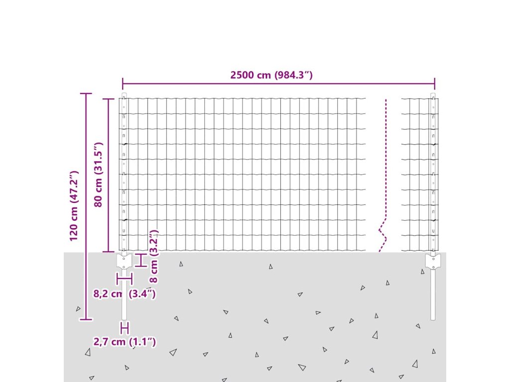 Tento vidaXL Euro Fence ve Šedé 0,8x25 m je ideální pro venkovní prostory díky svému pevnému designu a praktické univerzálnosti. Nejenže dobře vypadá, ale také poskytuje bezpečnou hranici, aby tvoje domácí mazlíčky a děti byly v bezpečí, a navíc dodává pěkný prvek k tvému majetku.