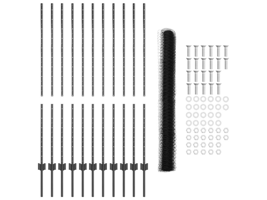 - 1 x plotový rol, 44 x sloupek, 1 x sada šroubů a matic
