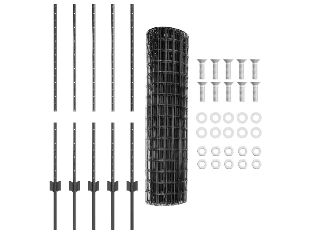 - 1 x plotová role, 20 x sloupek, 1 x sada šroubů a matic