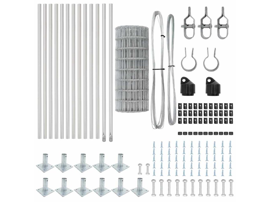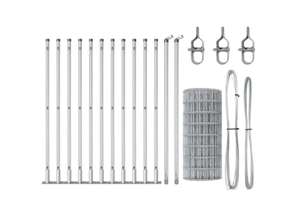 - 1 x Euro plot, 11 x sloupek, 2 x úhlový sloupek, 11 x hrot, 2 x úhlový hrot, 11 x plastová krytka, 33 x plastový podpěrný drát, 2 x krytka úhlového sloupku, 2 x hardware úhlového sloupku, 3 x napínač, 1 x 25 m bindovací drát, 1 x 80 m napínací drát