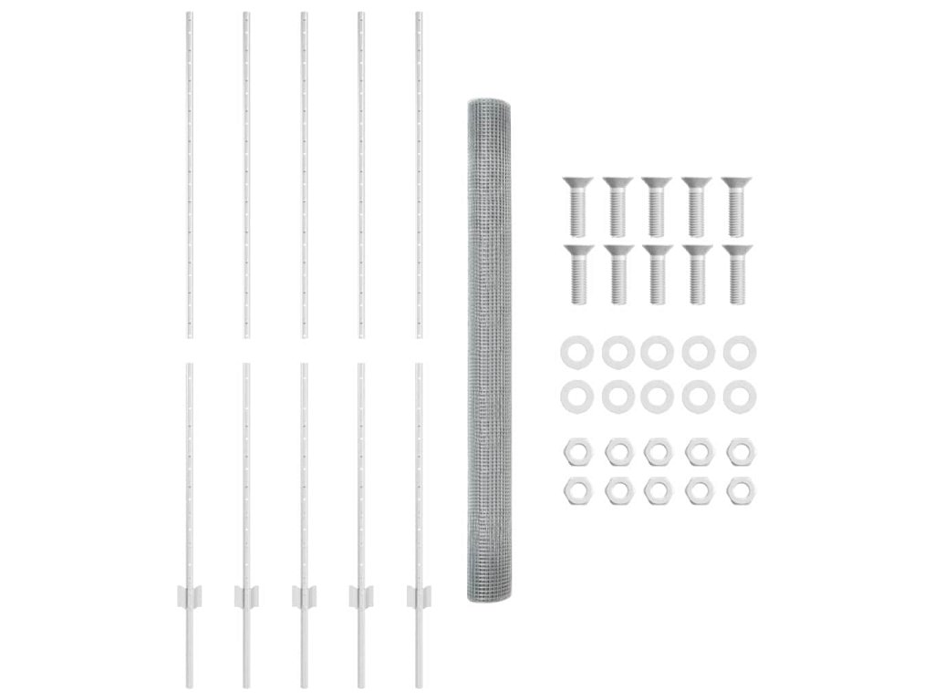 - 1 x plotová role, 20 x sloupek, 1 x sada šroubů a matic