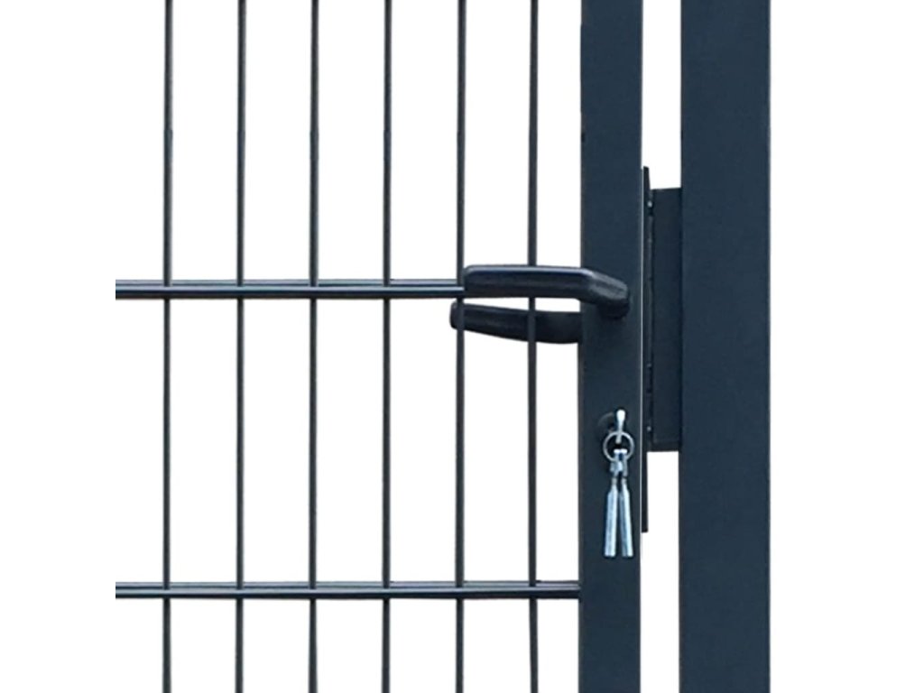 Naše zahradní branka je svařovaná ze silných vertikálních drátů a dvojitých vodorovných drátů, které jí dodávají mimořádnou pevnost, zajišťují vysoký stupeň zabezpečení a zároveň vytvářejí báječný vstup do vašeho objektu. Brána je vyrobená z pevné oceli, je opatřena práškovým nástřikem proti rzi a korozi. Tato plotová branka je opatřena robustními závěsy pro snadnou instalaci a v dodávce je také vysoce odolný uzamykací systém se dvěma odpovídajícími klíči.