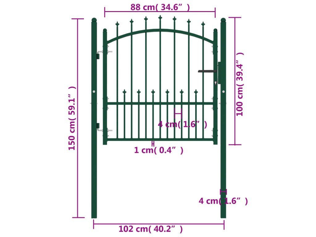 Plotová branka je vyrobená z vysoce odolné oceli, má robustní konstrukci s práškovým nástřikem proti rzi a korozi. Zahradní branka je vybavená vertikálním pruty zakončenými hroty a silnou vodorovnou výztuží, takže vám poskytne vysoký stupeň zabezpečení. Klenutý design jí dodává na eleganci. Součástí balení jsou dva pevné sloupky s robustními závěsy pro snadnou instalaci a také zámek se třemi klíči.