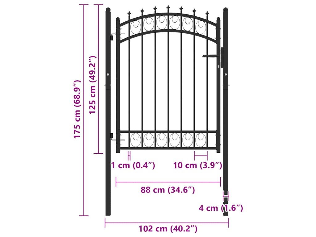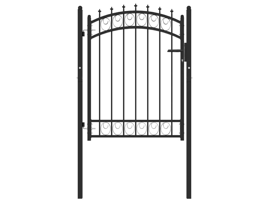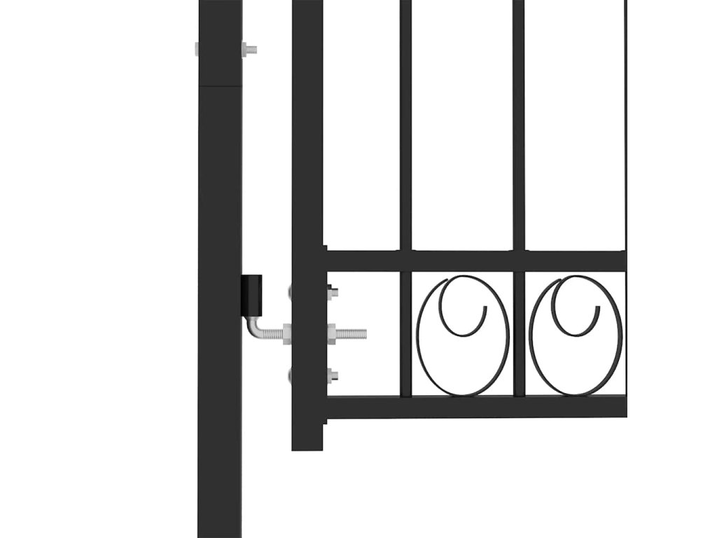 Plotová branka je vyrobená z vysoce odolné oceli, má robustní konstrukci s práškovým nástřikem proti rzi a korozi. Zahradní branka je vybavená vertikálním pruty zakončenými hroty a silnou vodorovnou výztuží, takže vám poskytne vysoký stupeň zabezpečení. Klenutý design jí dodává na eleganci. Součástí balení jsou dva pevné sloupky s robustními závěsy pro snadnou instalaci a také zámek se třemi klíči.
