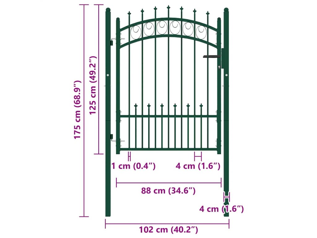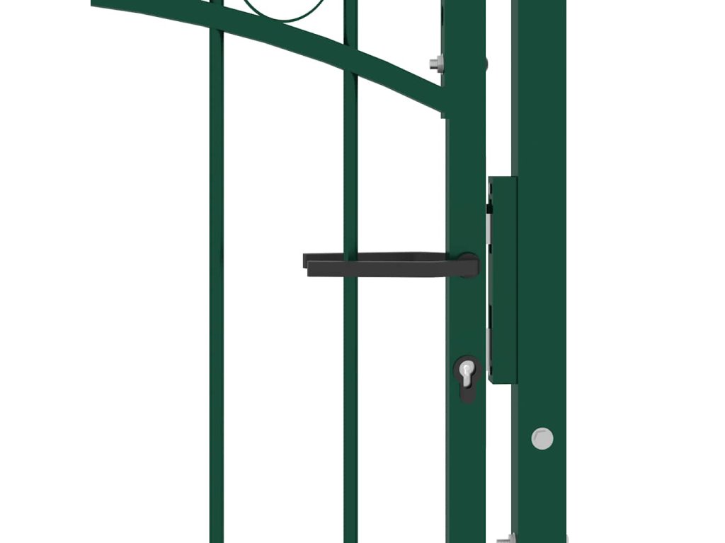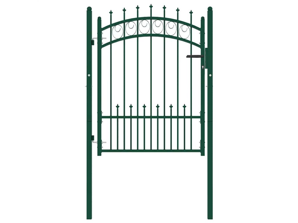 Plotová branka je vyrobená z vysoce odolné oceli, má robustní konstrukci s práškovým nástřikem proti rzi a korozi. Zahradní branka je vybavená vertikálním pruty zakončenými hroty a silnou vodorovnou výztuží, takže vám poskytne vysoký stupeň zabezpečení. Klenutý design jí dodává na eleganci. Součástí balení jsou dva pevné sloupky s robustními závěsy pro snadnou instalaci a také zámek se třemi klíči.