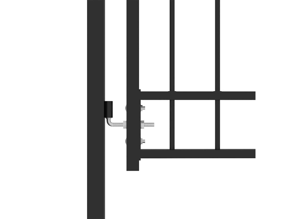 Plotová branka je vyrobená z vysoce odolné oceli, má robustní konstrukci s práškovým nástřikem proti rzi a korozi. Zahradní branka je vybavená vertikálním pruty zakončenými hroty a silnou vodorovnou výztuží, takže vám poskytne vysoký stupeň zabezpečení. Klenutý design jí dodává na eleganci. Součástí balení jsou dva pevné sloupky s robustními závěsy pro snadnou instalaci a také zámek se třemi klíči.