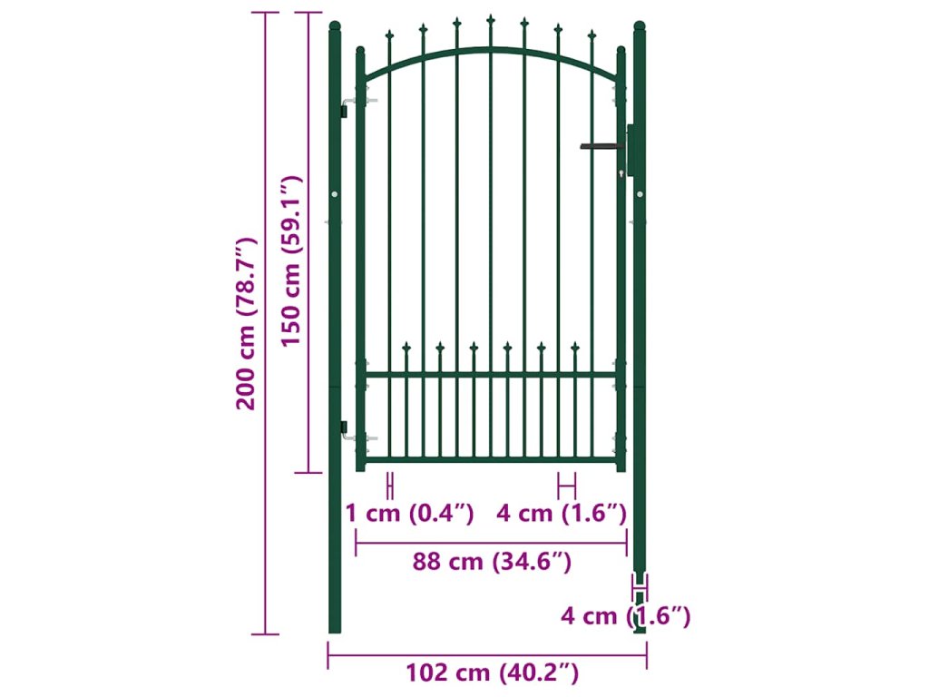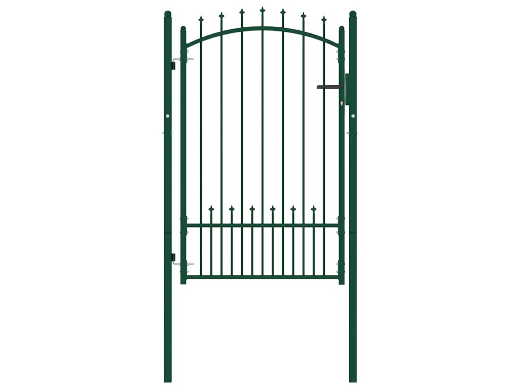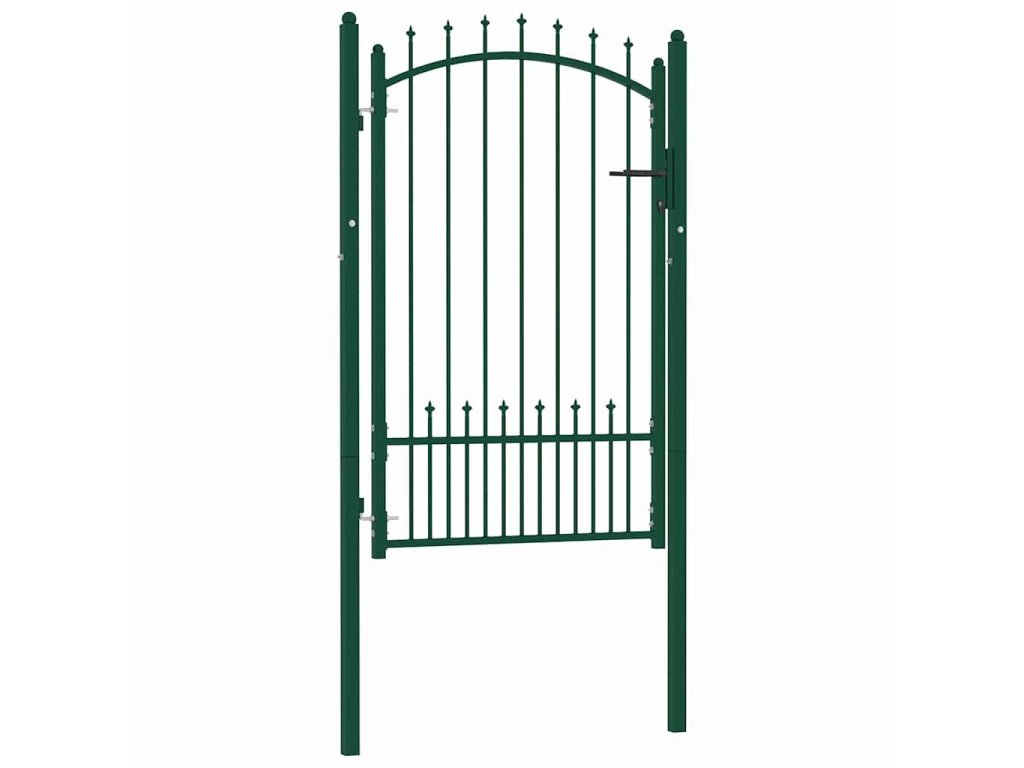 Plotová branka je vyrobená z vysoce odolné oceli, má robustní konstrukci s práškovým nástřikem proti rzi a korozi. Zahradní branka je vybavená vertikálním pruty zakončenými hroty a silnou vodorovnou výztuží, takže vám poskytne vysoký stupeň zabezpečení. Klenutý design jí dodává na eleganci. Součástí balení jsou dva pevné sloupky s robustními závěsy pro snadnou instalaci a také zámek se třemi klíči.