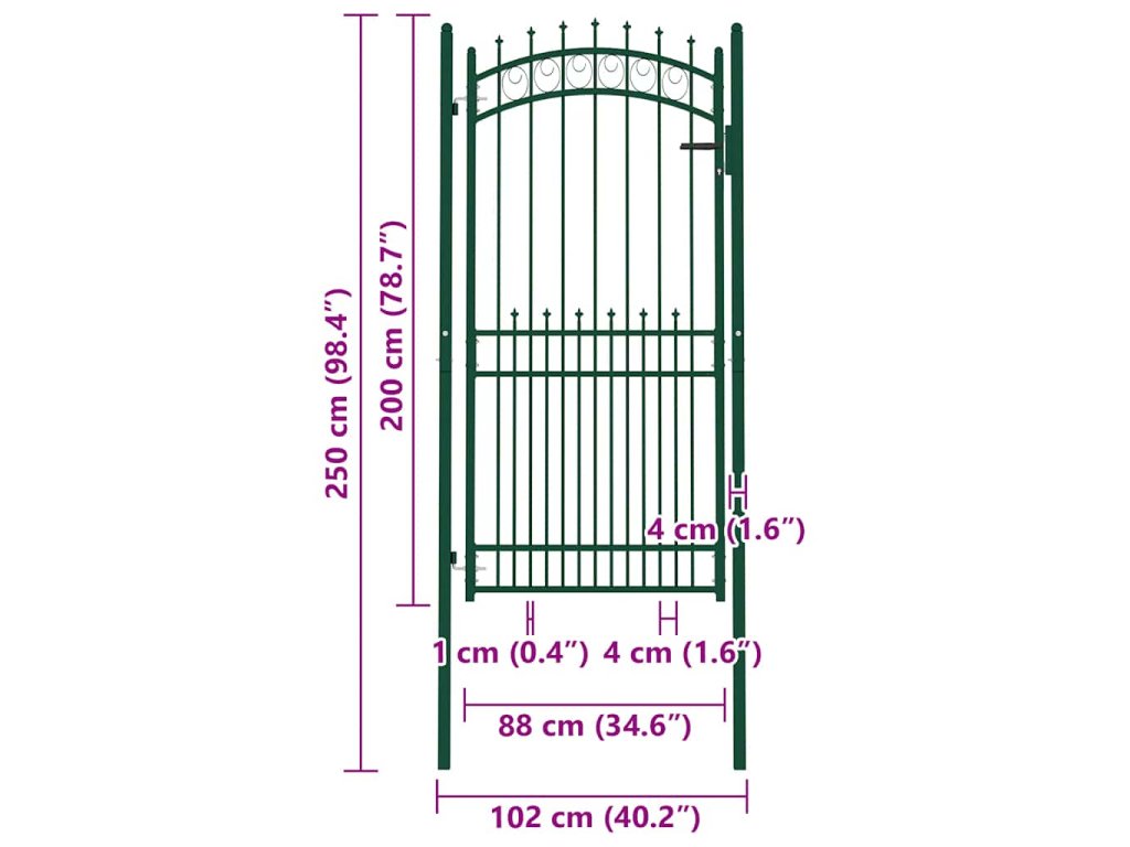 Plotová branka je vyrobená z vysoce odolné oceli, má robustní konstrukci s práškovým nástřikem proti rzi a korozi. Zahradní branka je vybavená vertikálním pruty zakončenými hroty a silnou vodorovnou výztuží, takže vám poskytne vysoký stupeň zabezpečení. Klenutý design jí dodává na eleganci. Součástí balení jsou dva pevné sloupky s robustními závěsy pro snadnou instalaci a také zámek se třemi klíči.