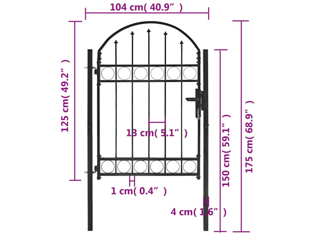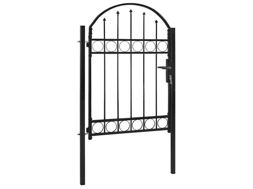 Branka má elegantní design s dekorativním obloukem ve své horní části a její silné horizontální příčky zpevňují rám. Branka vytváří krásný a zároveň bezpečný vstup na váš pozemek. Je vyrobená z vysoce odolné oceli a opatřená práškovým nástřikem proti rzi a korozi.