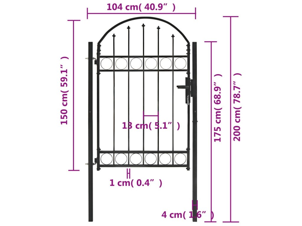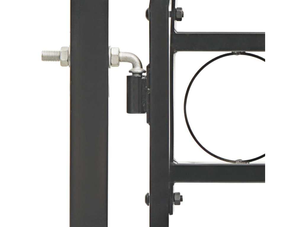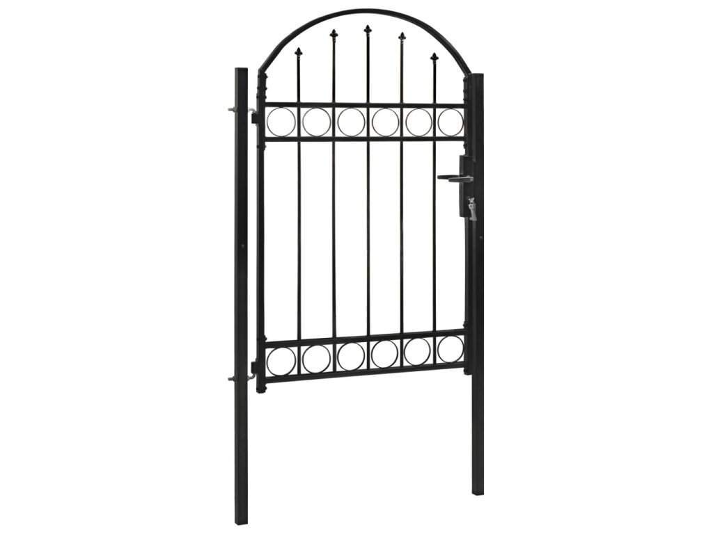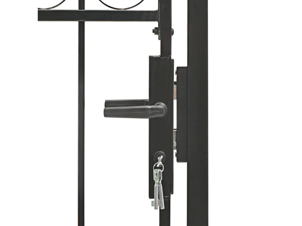 Branka má elegantní design s dekorativním obloukem ve své horní části a její silné horizontální příčky zpevňují rám. Branka vytváří krásný a zároveň bezpečný vstup na váš pozemek. Je vyrobená z vysoce odolné oceli a opatřená práškovým nástřikem proti rzi a korozi.