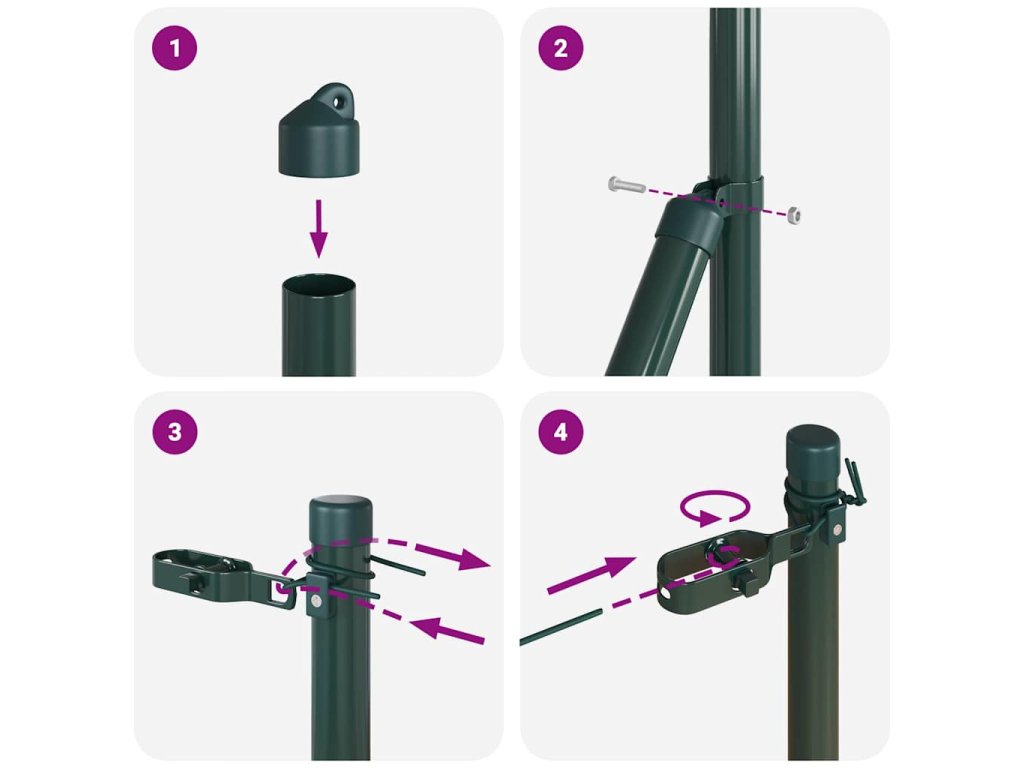 - Obsah balení: 11 x sloupek, 2 x úhlový sloupek, 11 x kolík, 2 x úhlový kolík, 11 x plastová krytka, 33 x plastová napínací drátová podpěra, 2 x krytka úhlového sloupku, 2 x hardware úhlového sloupku, 3 x napínač, 1 x 25m vazební drát, 1 x 80m napínací drát<\li>