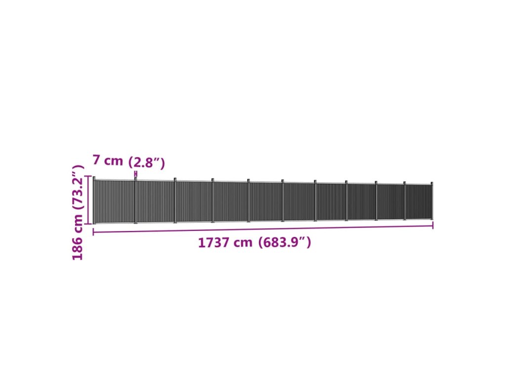 - Celkové rozměry: 1 737 x 186 cm (Š x V)