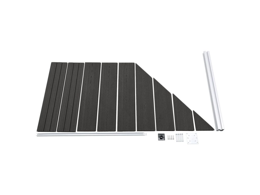 - Materiál: dřevoplastový kompozit + hliníkové sloupky