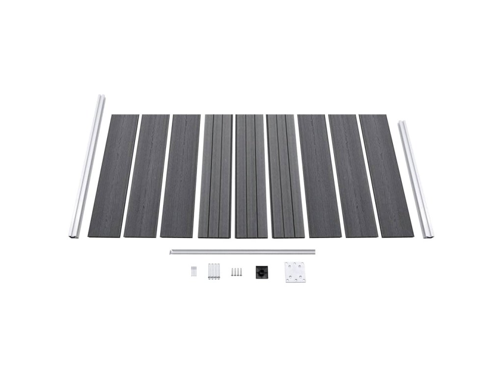 - Materiál: WPC (dřevoplastový kompozit), hliník, ocel