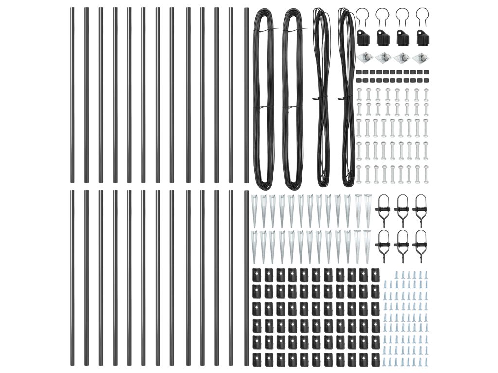 - Delivery Contains: 22 x Post, 4 x Angle Post, 22 x Spike, 4 x Angle Spike, 22 x Plastic Cap, 66 x Plastic Tension Wire Supporter, 66 x Crew on the Plastic Supporter, 4 x Angle Post Cap, 4 x Angle Post Hardware, 4 x Angle Post Hardware Screw M6X25, 52 x Male Part Screw M6X40, 6 x Tensioner, 2 x 25m Binding Wire, 2 x 80m Tension Wire