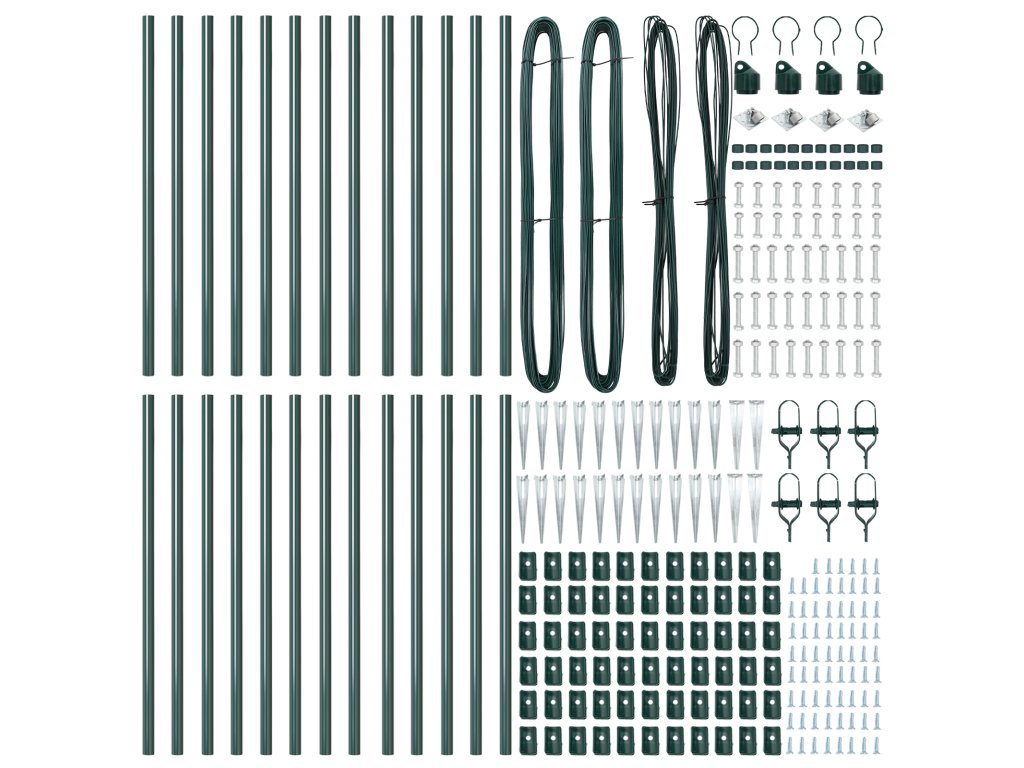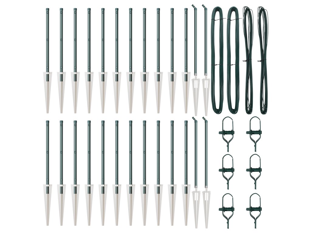 - Delivery Contains: 22 x Post, 4 x Angle Post, 22 x Spike, 4 x Angle Spike, 22 x Plastic Cap, 66 x Plastic Tension Wire Supporter, 66 x Crew on the Plastic Supporter, 4 x Angle Post Cap, 4 x Angle Post Hardware, 4 x Angle Post Hardware Screw M6X25, 52 x Male Part Screw M6X40, 6 x Tensioner, 2 x 25m Binding Wire, 2 x 80m Tension Wire