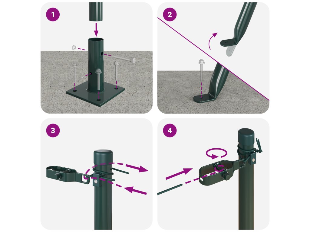 - Delivery Contains: 22 x Post, 4 x Angle post, 22 x Base plate, 22 x Plastic cap, 66 x Plastic tension wire supporter, 4 x Angle post cap, 4 x Angle post hardware, 6 x Tensioner, 2 x 25 m Binding wire, 2 x 80 m Tension wire