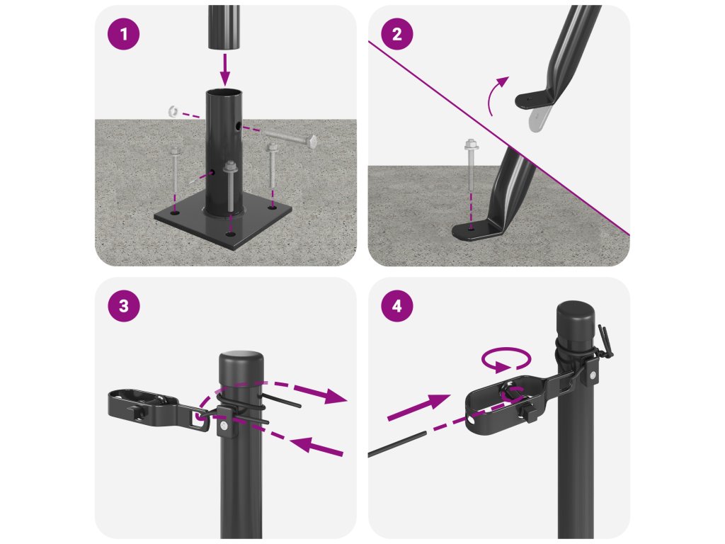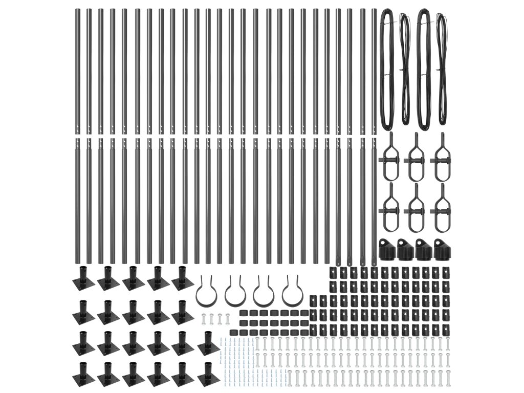 - Komplexní sada: Každý balíček zahrnuje všechno, co potřebujete, včetně sloupků, základových desek a napínacích drátů, takže máte stabilní montáž ihned od začátku.