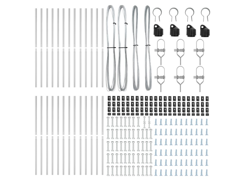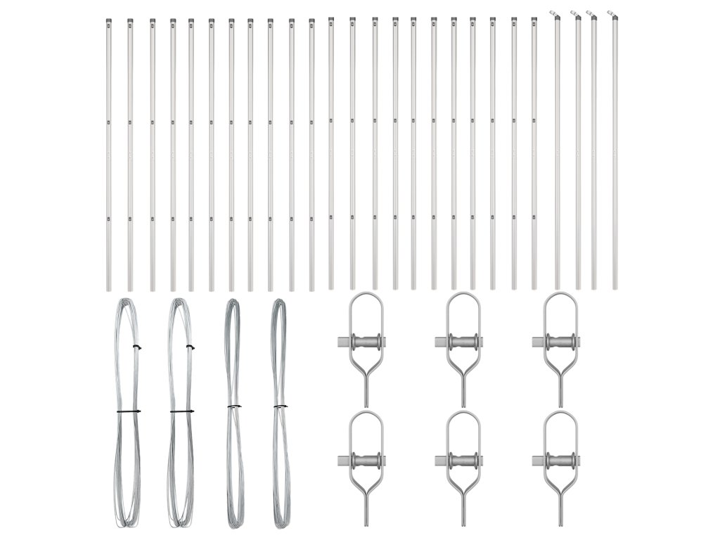 - Delivery Contains: 22 x Post, 4 x Angle Post, 22 x Plastic Cap, 66 x Plastic Tension Wire Supporter, 4 x Angle Post Cap, 4 x Angle Post Hardware, 6 x Tensioner, 2 x 25m Binding Wire, 2 x 80m Tension Wire