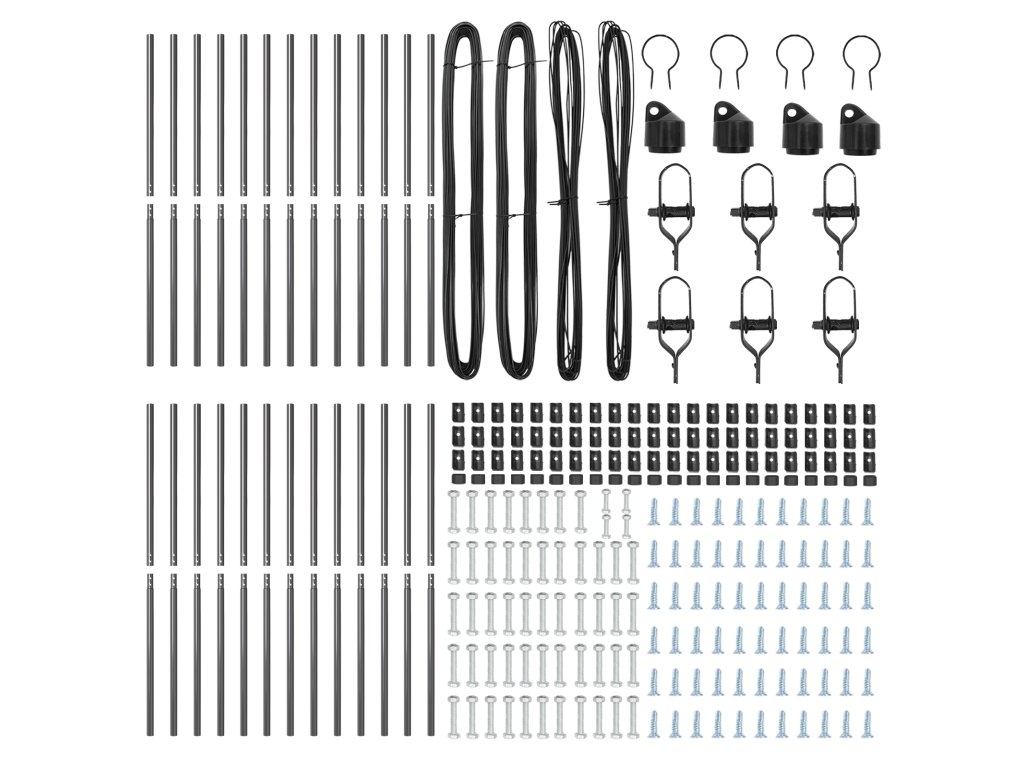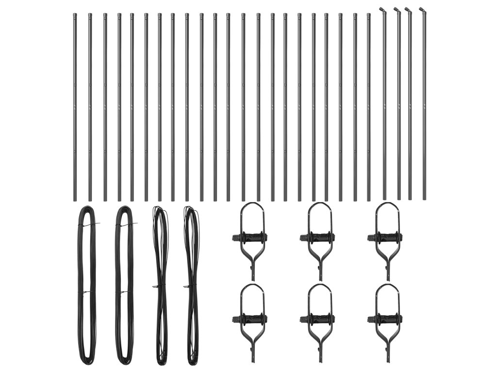- Delivery Contains: 22 x Post, 4 x Angle post, 22 x Plastic cap, 66 x Plastic tension wire supporter, 4 x Angle post cap, 4 x Angle post hardware, 6 x Tensioner, 2 x 25 m Binding wire, 2x 80 m Tension wire