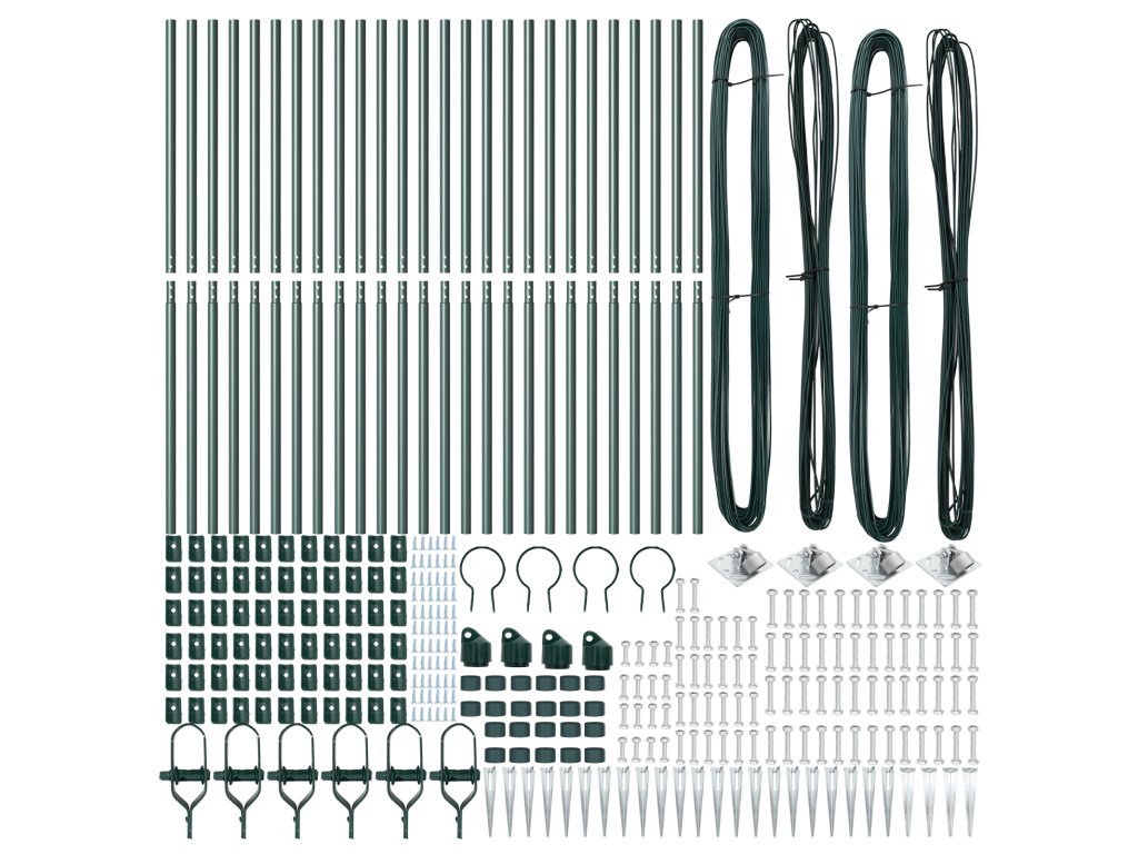 - Delivery Contains: 22 x Post, 4 x Angle Post, 22 x Spike, 4 x Angle Spike, 22 x Plastic Cap, 66 x Plastic Tension Wire Supporter, 66 x Crew on the Plastic Supporter, 4 x Angle Post Cap, 4 x Angle Post Hardware, 4 x Angle Post Hardware Screw M6X25, 52 x Male Part Screw M6X40, 6 x Tensioner, 2 x 25m Binding Wire, 2 x 80m Tension Wire