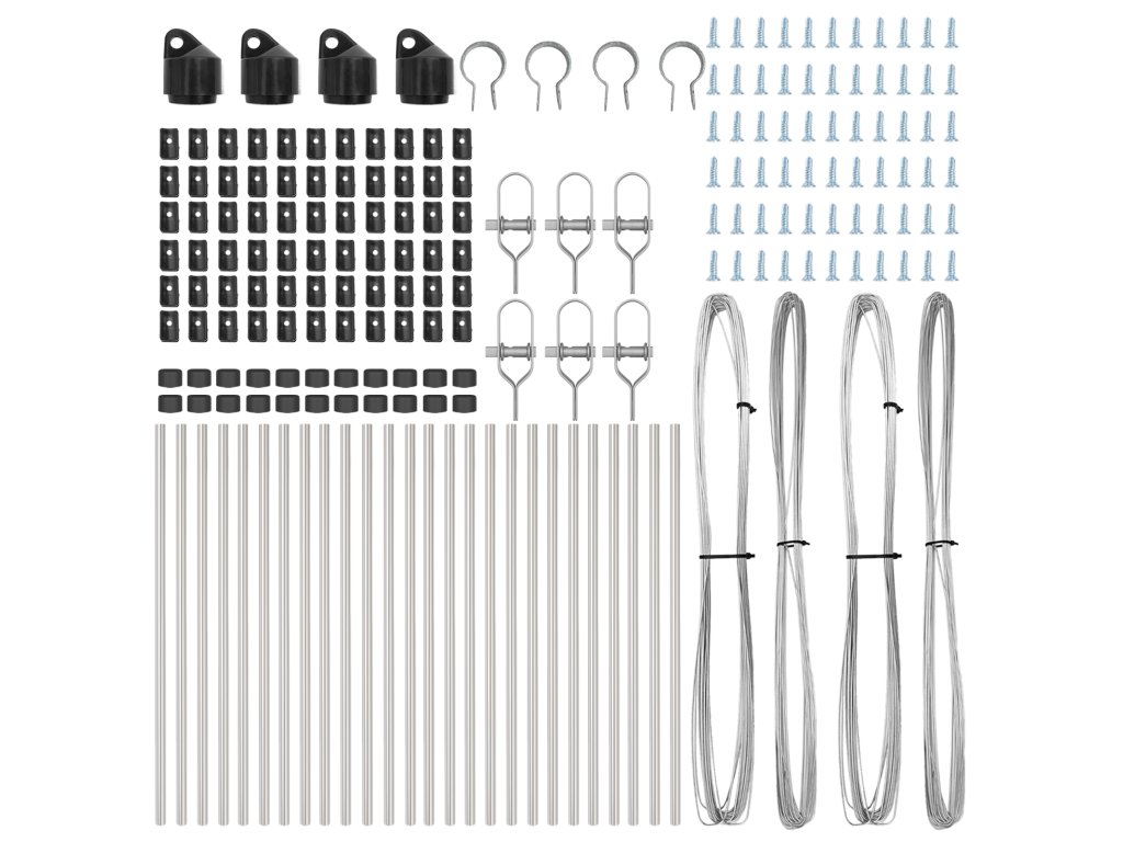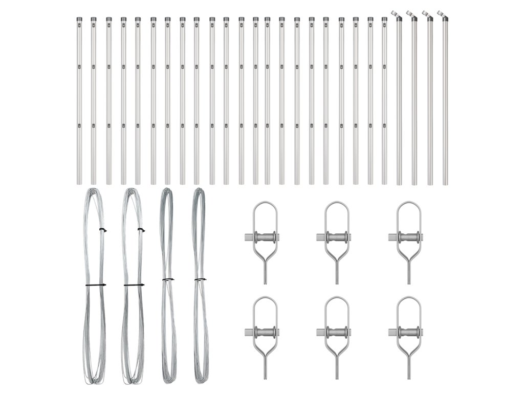 - Delivery Contains: 22 x Post, 4 x Angle post, 22 x Plastic cap, 66 x Plastic tension wire supporter, 4 x Angle post cap, 4 x Angle post hardware, 6 x Tensioner, 2 x 25 m Binding wire, 2x 80 m Tension wire