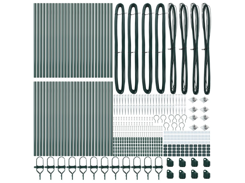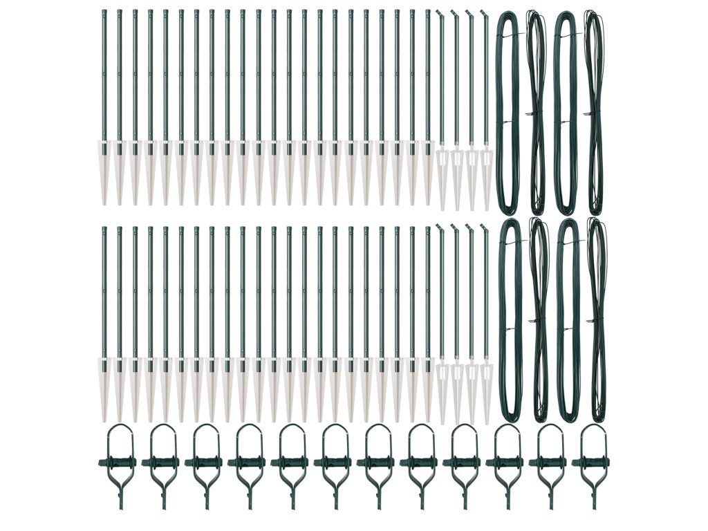- Delivery Contains: 44 x Post, 8 x Angle Post, 44 x Spike, 8 x Angle Spike, 44 x Plastic Cap, 132 x Plastic Tension Wire Supporter, 132 x Crew on the Plastic Supporter, 8 x Angle Post Cap, 8 x Angle Post Hardware, 8 x Angle Post Hardware Screw M6X25, 104 x Male Part Screw M6X40, 12 x Tensioner, 4 x 25m Binding Wire, 4 x 80m Tension Wire