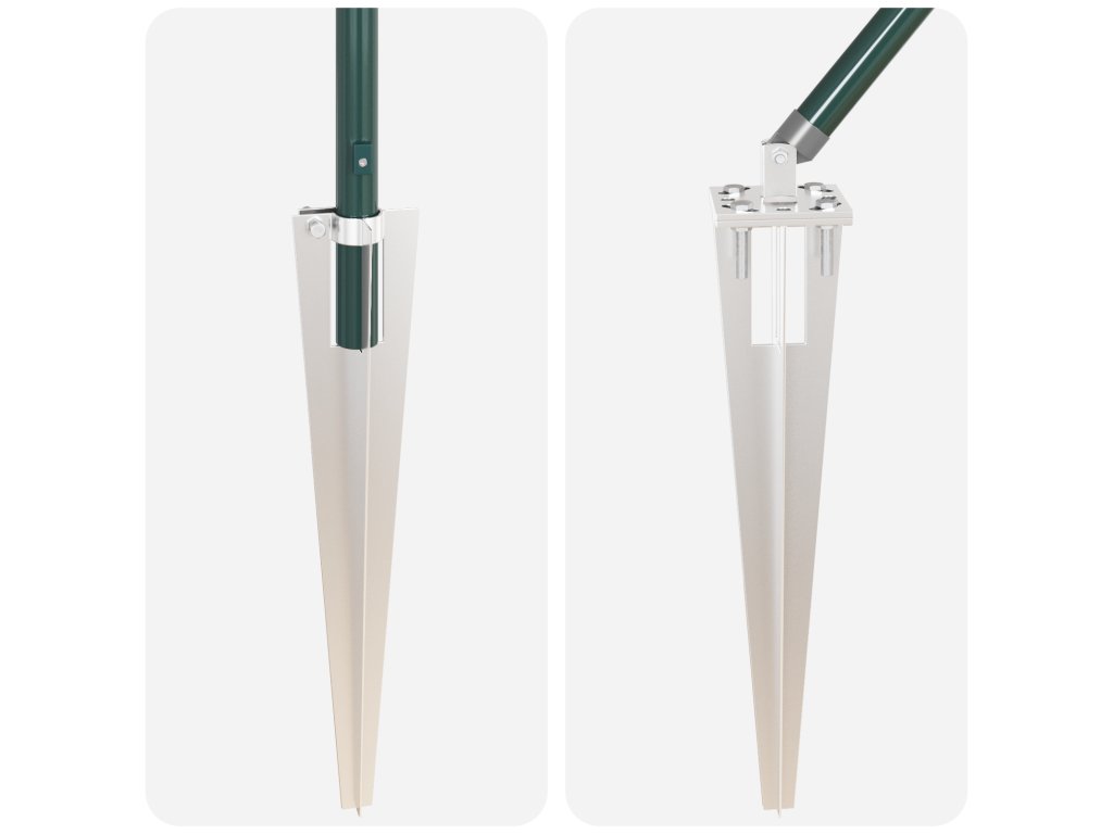 - Snadná instalace: Hroty usnadňují zabodnutí do země. Montáž je jednoduchá, nevyžaduje moc nástrojů nebo zkušeností. Ideální na rychlý montáže bez obětování pevnosti.
